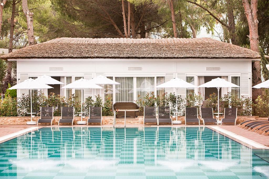 Grand deluxe beachfront suite (TOP VIP concept) (129 кв. м): 2 террасы (одна – с обеденной зоной со столом на 6 персон на открытом воздухе), гостиная с обеденной и кухонной зонами (стол на 6 персон), 2 спальни (одна – с двуспальной, вторая – с двумя отдельными кроватями), гардеробная зона, 2 ванные комнаты. Расположены в сосновой роще рядом с пляжем. Вид на море и бассейн. Услуги персонального камердинера.